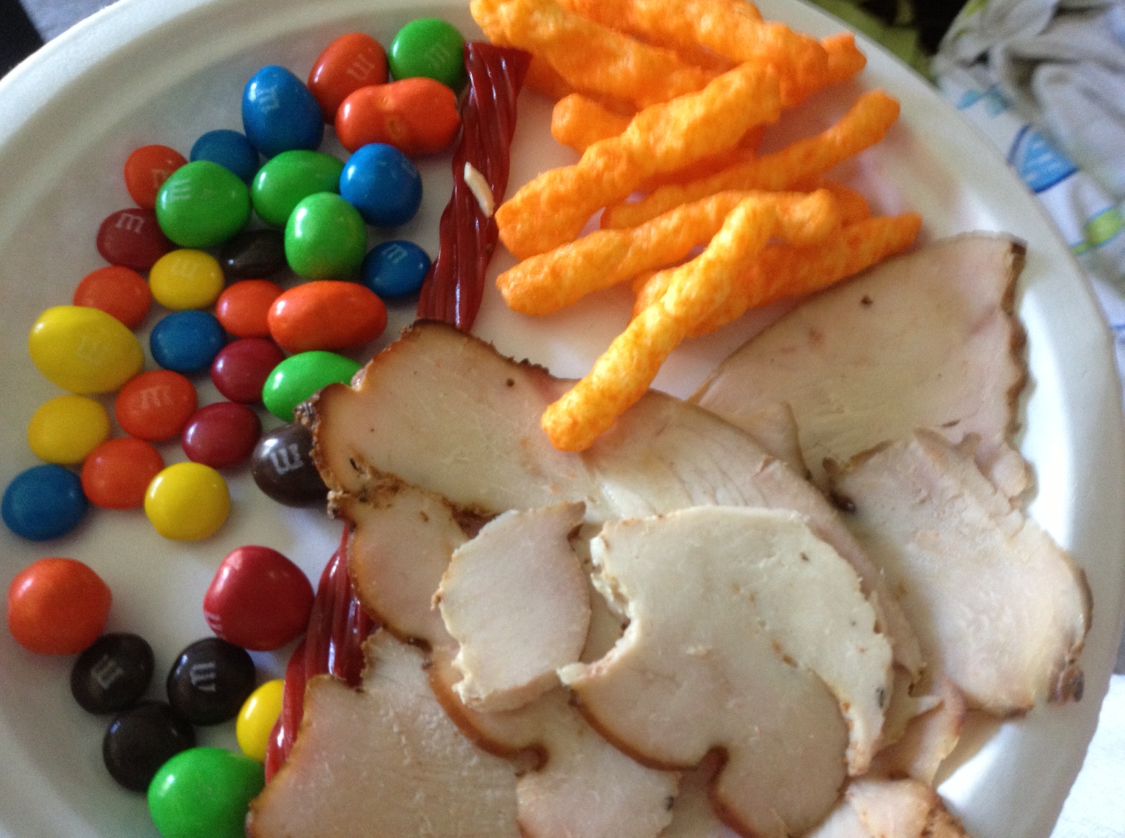 There was turkey on the plate. With the M&M’s, Twizzlers and Cheetos.