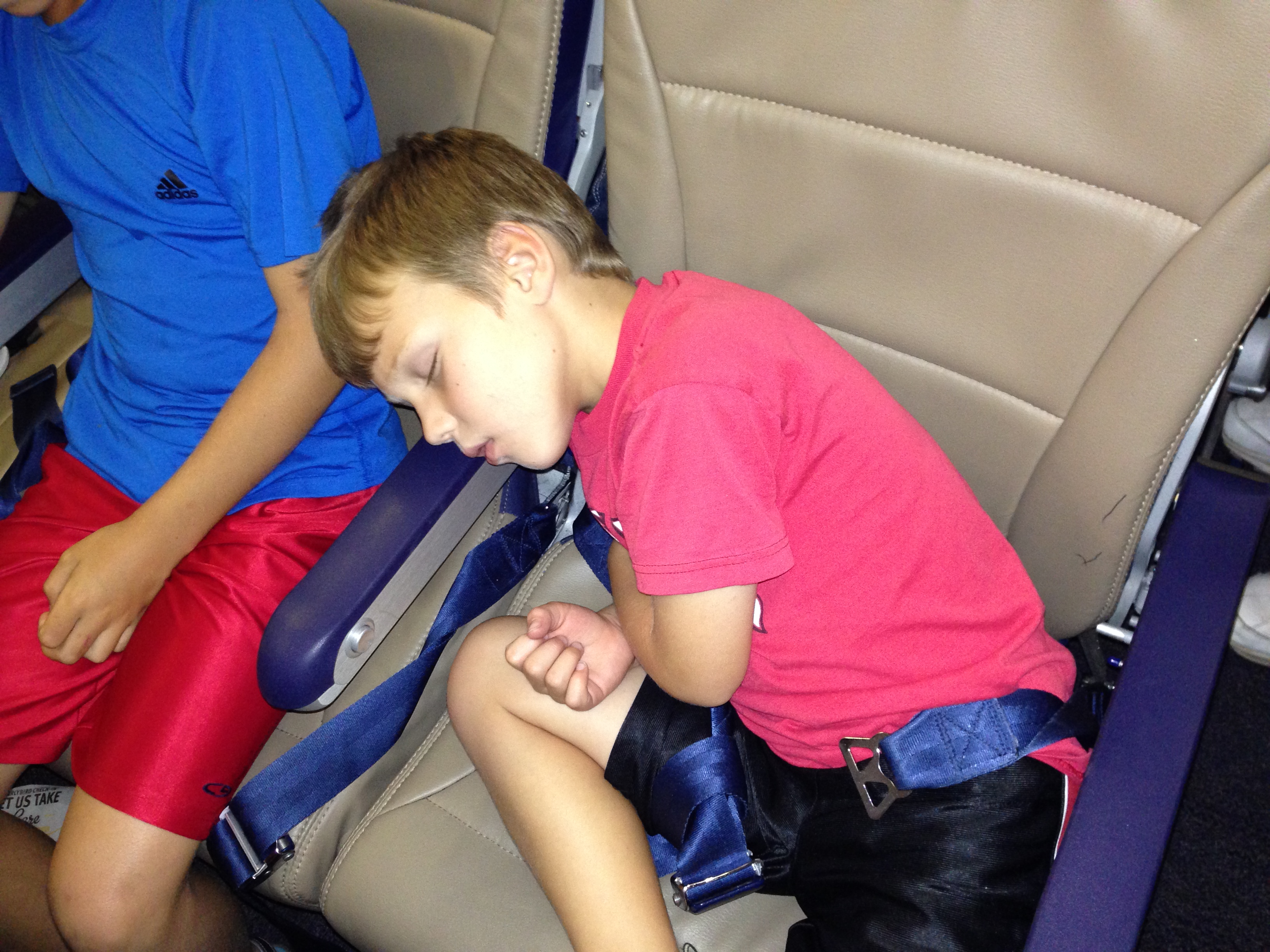 Isley, desperately tired, fell asleep on the plane. Finally. Only to have to be picked up and carried back to the terminal to finish her nap under the arm of two connecting chairs.