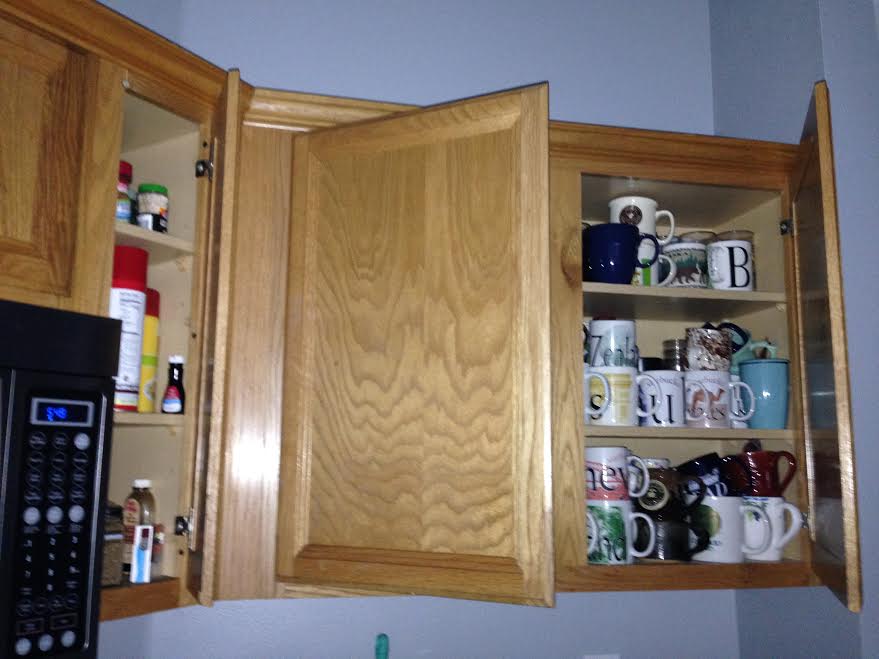 I have this habit of not closing cabinets. Because I’m slightly vertically challenged, many of the open doors don’t bother me.
