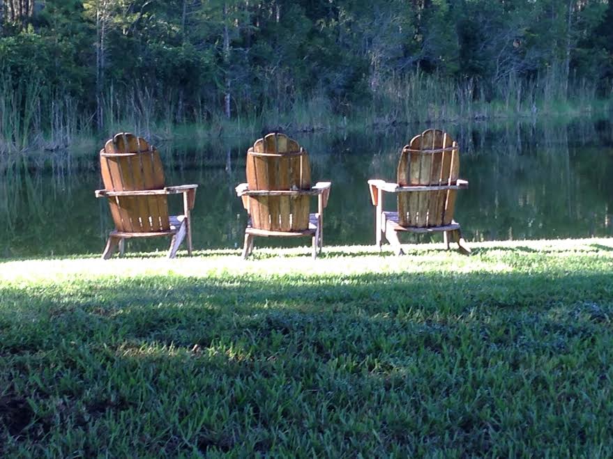 We’ve adirondack chairs facing the pond that are a constant invitation to stop, stay awhile, relax. As I mowed, I thought of how lovely it would be to pull one under the shade of the tree and sit with a glass of iced tea. And ponder.