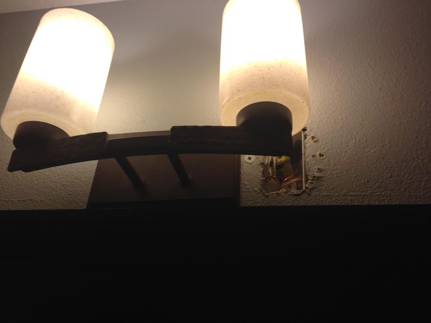 They put in a new mirror and light fixture in the downstairs bathroom. Which  necessitated cutting a new hole to fit the new fixture.