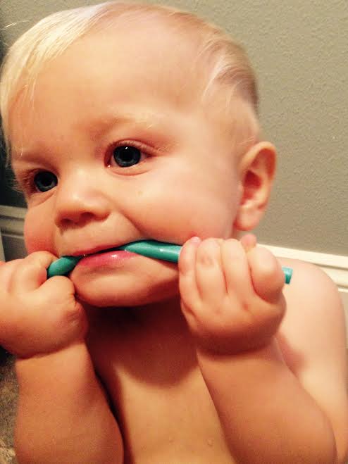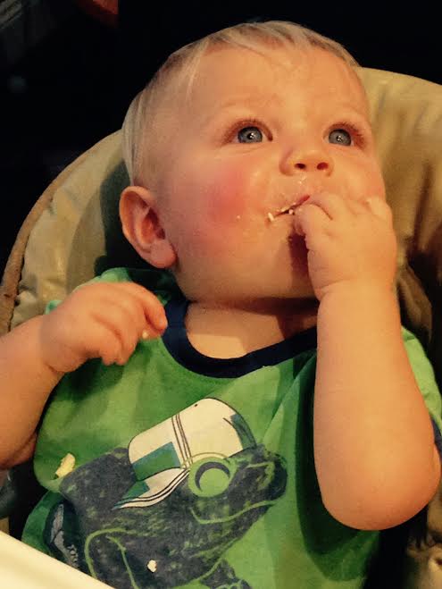 Ryken, at eleven months, either is teething or has a cold. The symptoms look a lot alike. The flushed cheeks make me think it’s a cold. But the fact that he gnaws on everything like a puppy and slobbers like a mastiff makes me think it’s teething.