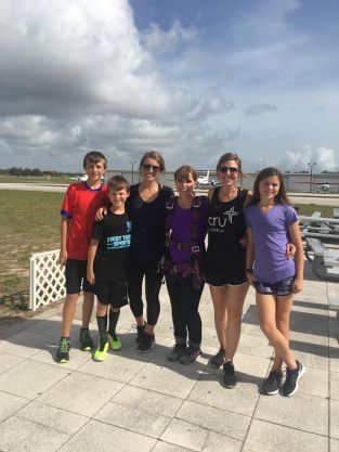 Once they outfitted me with the harness that would allow me to jump tandem with a professional, I could barely contain myself. My daughter did the “Mom’s misbehaving” eye roll.