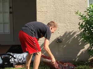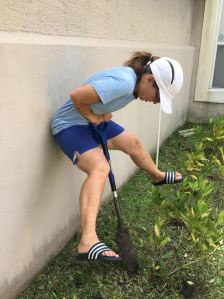 Since neither John nor I are great planners, we hadn’t gotten sand bags to build a flood barrier to our back porch. The last minute, John bought large bags of mulch and dirt to use in place of sand. They worked to keep water off the porch.