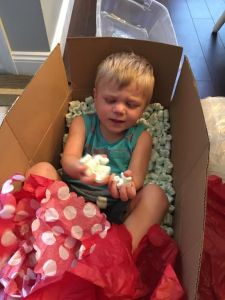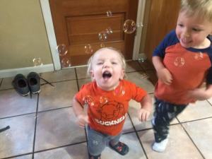 Twenty-month-old Landry sees life as a party. He enjoys everything and everybody. He finds reasons to smile, and his laugh is effervescent. I’d love to bottle it–we’d all be more enjoyable if we had a taste of his laugh.