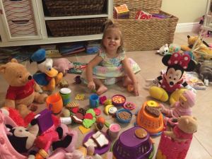 Two-year-old Brooklyn is passionate about “her guys”. We had her here for an afternoon, and nap time wasn’t going to happen apart from Minnie, Mickey and the clan in bed with her. She collected her sleeping buddies, and when went missing, sleep was out of the question till the little stuffed critter was found. She plays with these guys with a creative passion that makes them seem alive.