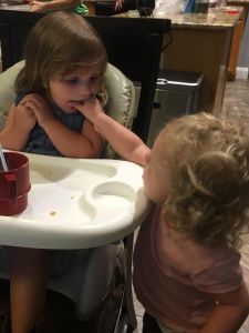 Wariness abated, and hide and seek sounded like a great idea. Brooklyn, at two and a half, told Sloane to count and she’d hide. Sloane nodded, covered her eyes, said, “One”, and raced off to find her cousin. Brooklyn patiently told her she was supposed to count. Sloane just as patiently said she wanted to hide.