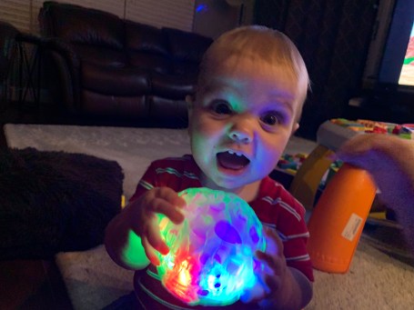 We were babysitting a few of the grands, and I was fascinated by how they played with a ball John had ordered online. It vibrated, made loud noises that were quite indiscernible, and had flashing lights that gave me a bit of a headache.
