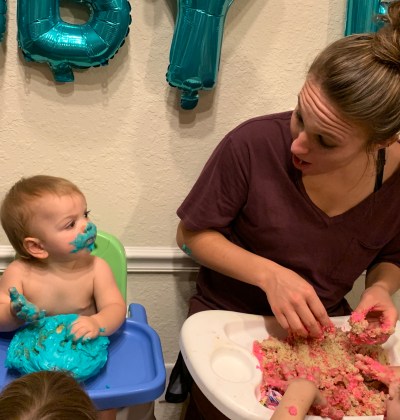Mason, at one, has had very little of the sweet stuff, so I made a smash cake for him to enjoy. I made one for Debbie to celebrate her momentous entry into this world as well.