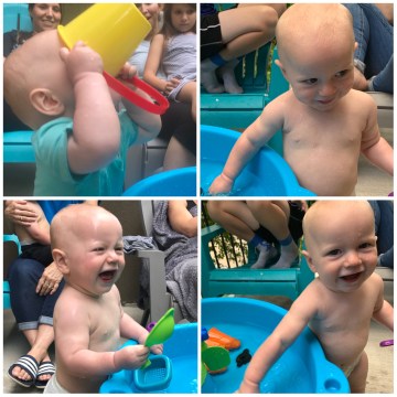 He played with reckless abandon. There was such joy in his giggles and laughs, especially when soaking himself. He never quit until his mom took him inside.