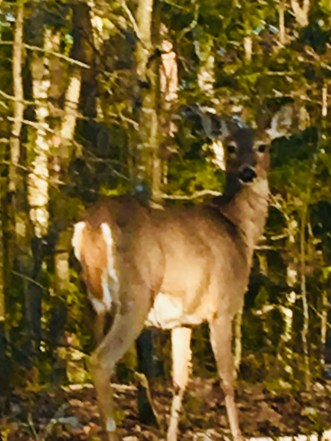 Gayle appointed me deer watcher. I embraced that request with responsibility. I peered into the darkening woods as we drove by and could see glimpses of movement.
