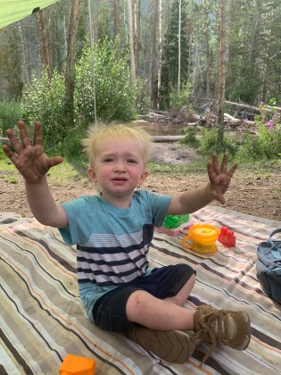 Setting up camp, however, made the outdoors home. Dirt became Beck’s best friend, and he sprawled in it, rolled in it, enjoyed it. His mom would try to keep his face and hands wiped off so he wouldn’t eat more dirt than needed. Putting him in the middle of a large blanket with a few toys didn’t dissuade him from finding more enjoyable distractions–all of the more natural sort. He knew enough not to eat dirt, but putting his grimy hands on his face and in his mouth gave the dirt access to his insides anyway.