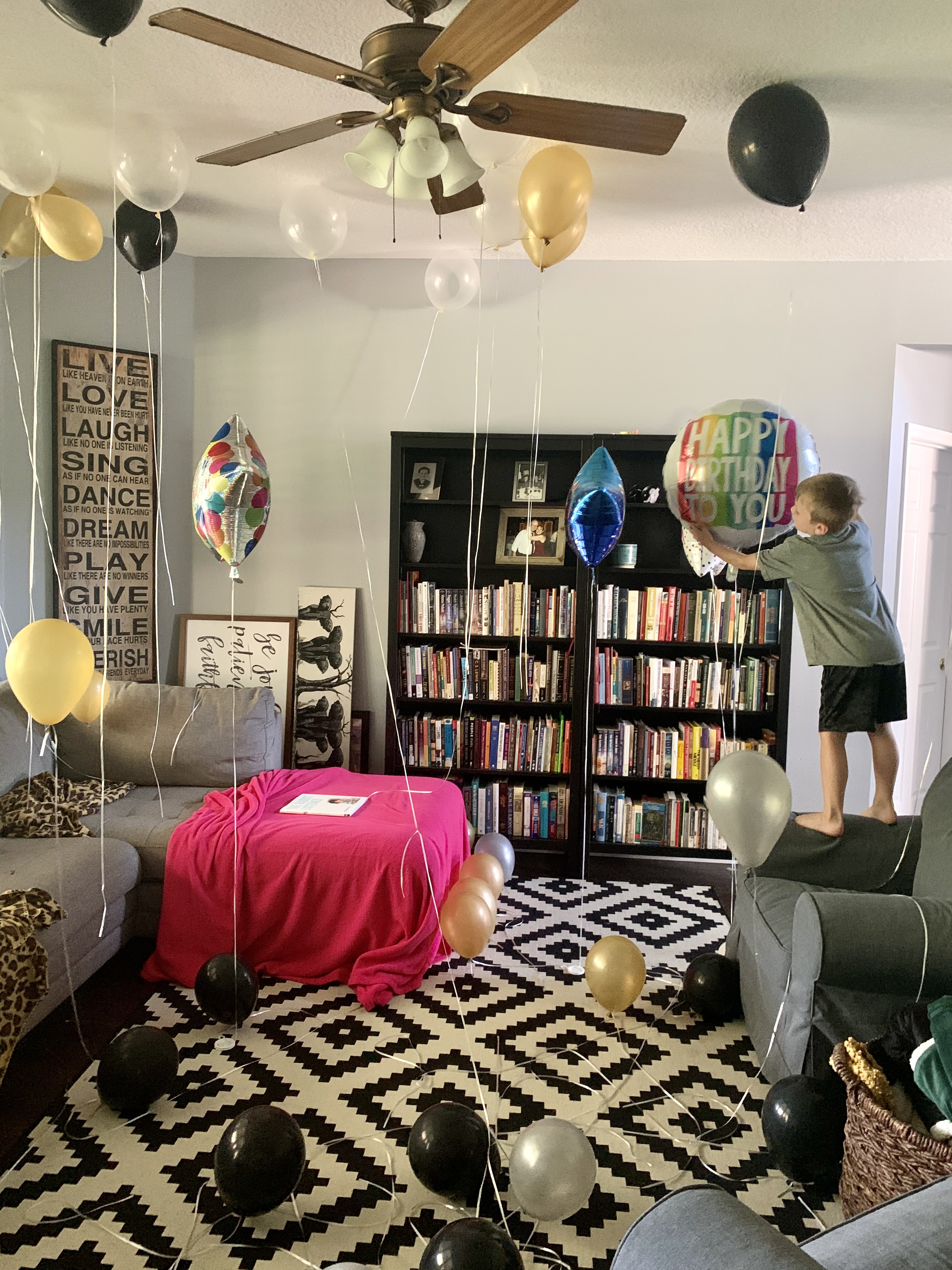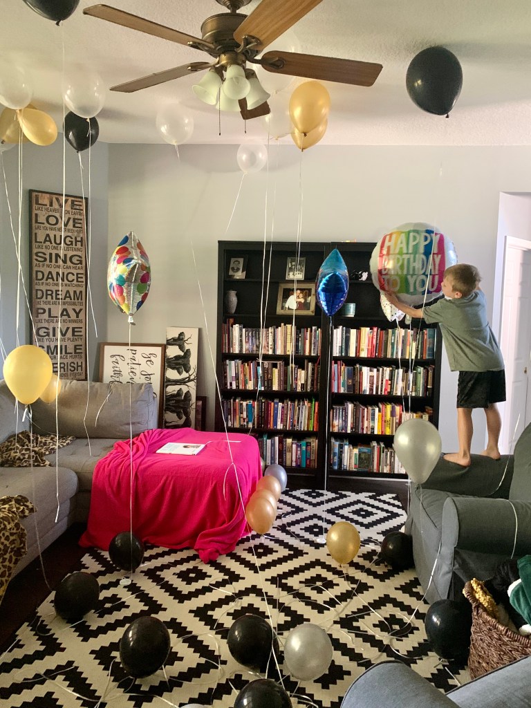The kids had gotten a plethora of balloons for the celebration, filled with helium and bobbing around like apples in a tub of water.