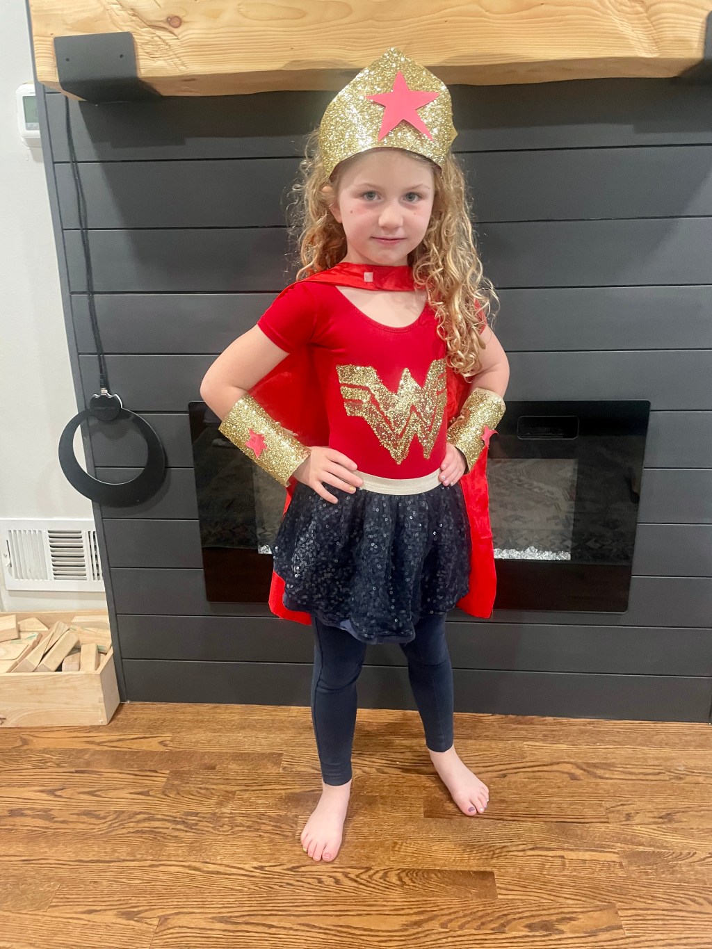 Sloane and her first-grade classmates were tasked by their teacher to dress up as superheroes. Melody went to town, the designer-minded mom that she is, and created an outfit fit for Wonder Woman. Complete with more glitter than any teacher would ever appreciate.