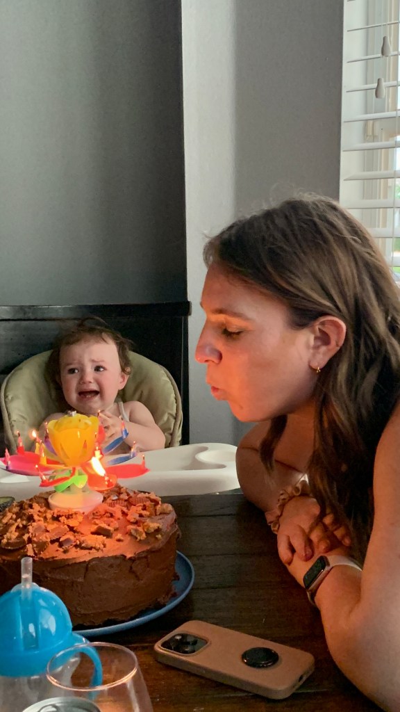 Kolly, who recently celebrated her first birthday, was quite bothered by the spectacle of the musical, fire-filled, twirly candle. Her tears mingled with the birthday song.