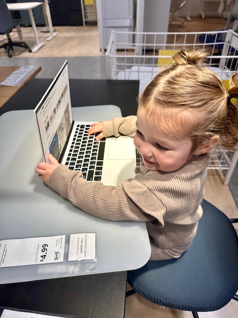 Kolly, her mom, her little sister, and I went on an adventure to IKEA, a store known globally for having anything a person could need for outfitting any space. We were on a mission to find bedding for my daughter’s bedroom. To get to that part of the store, which was near the very end of the property, we wandered through room after room of everything under the sun. Kolly had to sit on every swivel chair, lie down in every bed, and pretend to type at every fake computer.