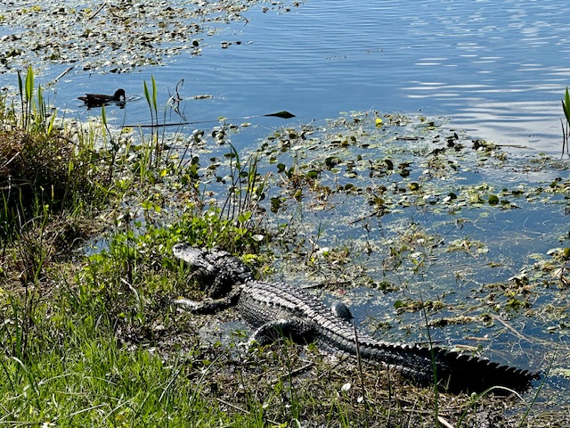 The understatement of the sign—”Do not approach, feed, or harass the alligators,” made us both laugh. Wasn’t it common sense to not do any of that? Alligators do have a reputation of being carnivores–we are walking meat to them.