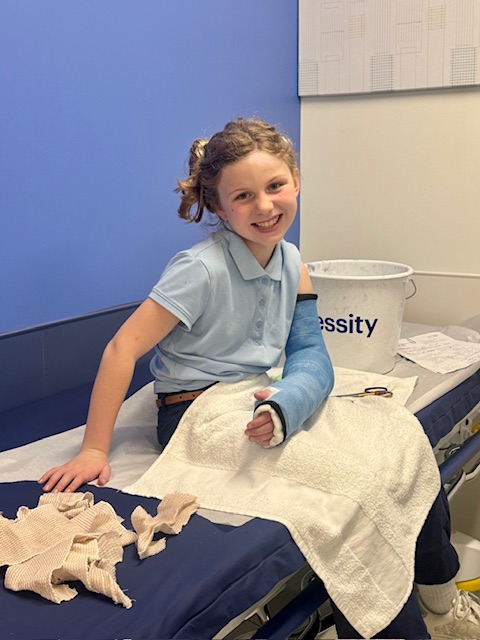 She might have swung higher than usual. She definitely jumped further than she often did. But instead of her feet, she landed on the palm of her hand, fracturing the two bones of her lower arm.