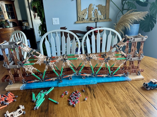 Two college graduates and an engineering student who has a brilliant mind for putting things together collaborated to build a bridge. Not some simple bridge, but one that took three incredible minds to put together. This was the after-Christmas-dinner activity for wired minds. It’s way past the Tinker Toys and Lincoln Logs kind of building. They worked on it for hours.