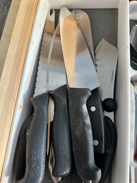 When knives get old, they get dull, which suited me just fine. Granted, it made chopping an onion more challenging, but the dull knives worked well enough. It might have taken a little longer to accomplish the task, but not enough time to warrant getting new ones.