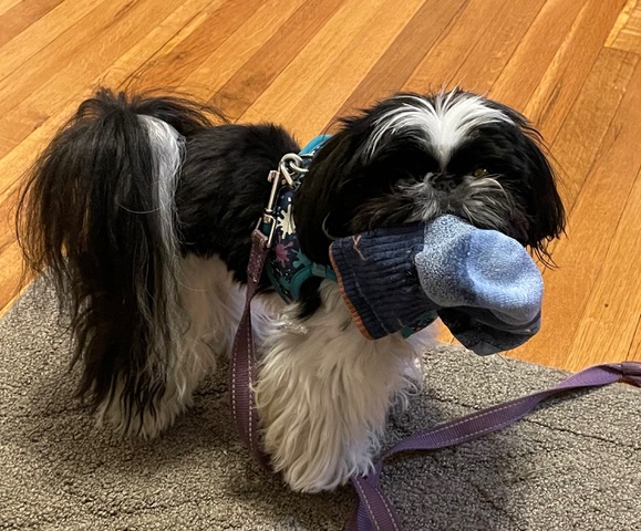 Stress in a tiny dog isn’t fun. If the sock is taken from him, it takes him time to settle down and decompress. He belongs to my sister-in-law, who has very adult conversations with him. She actually wrote a poem about his issues: